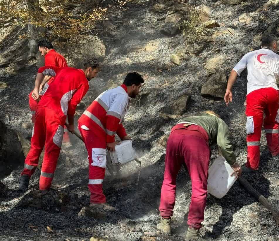 مشارکت18 تیم مجهز هلال احمر مازندران در عملیات اطفای حریق در جنگلهای الیت شهرستان چالوس/امدادرسانی به 7 نفر مصدوم/ توزیع صدها بسته غذایی
